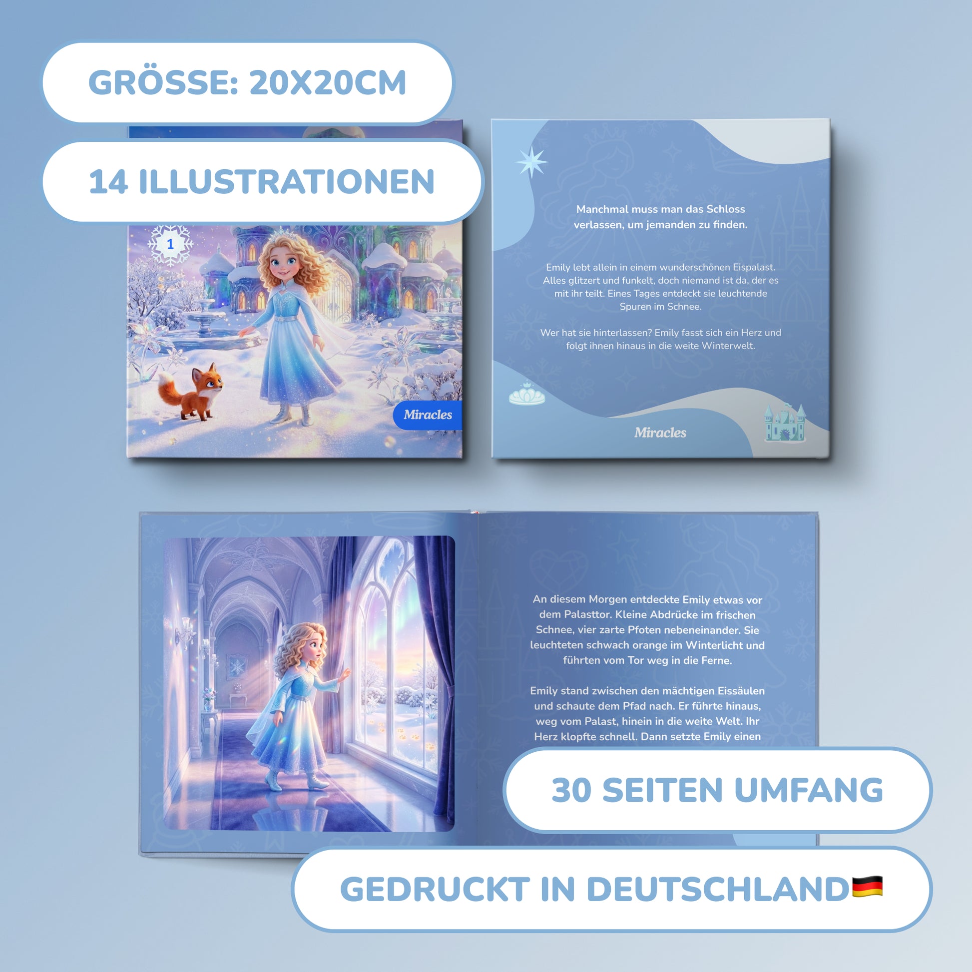 30 pages with 14 unique illustrations. High-quality 140gsm paper, size 8x8 inches. Softcover or hardcover. Printed in US & UK.
