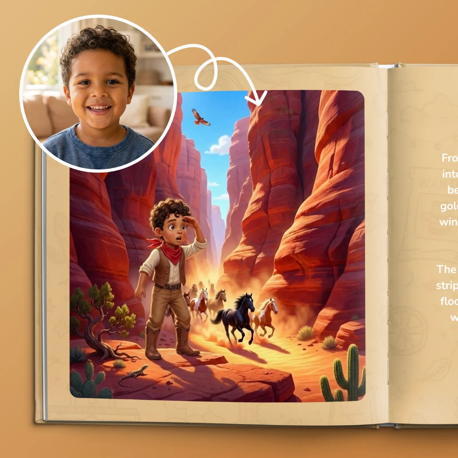 Choose a story, upload a photo, and specify hair and eye color. In 30 seconds you will see the preview. Does everything fit? Then order – done.