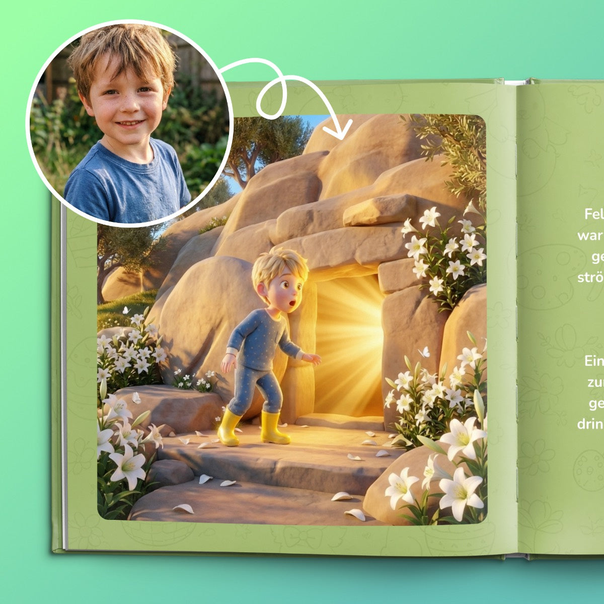Our team of designers brings the character to life in 14 illustrated scenes in the book, so that your child plays the leading role in the book.