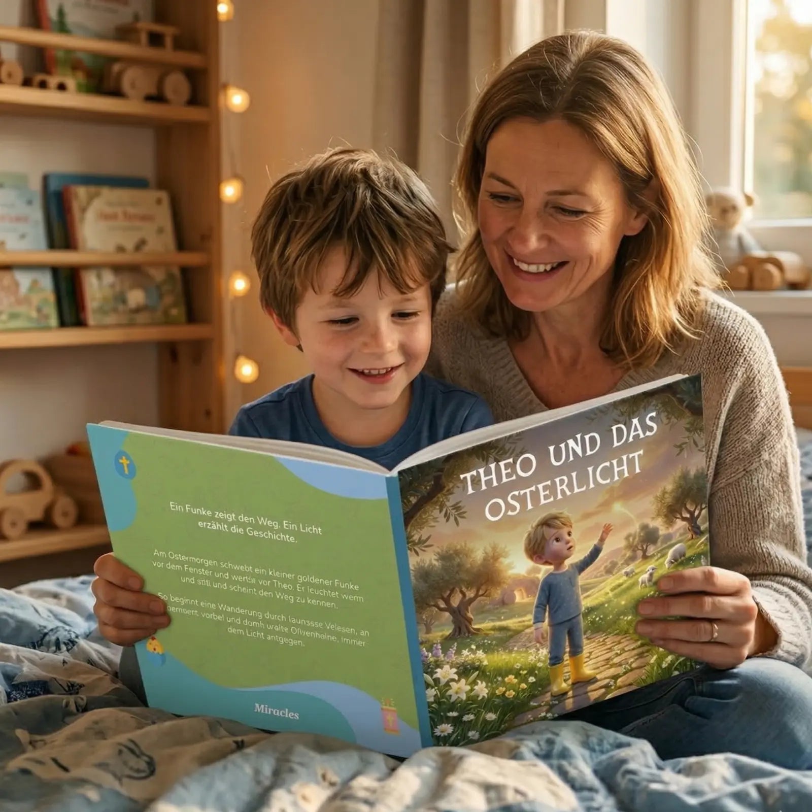 Choose a story, upload a photo, and specify hair and eye color. In 30 seconds you will see the preview. Does everything fit? Then order – done.