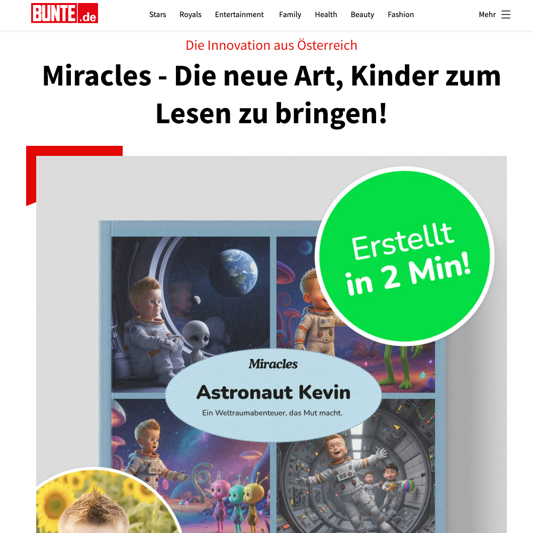 Wir haben Miracles gegründet, weil Kinder Geschichten verdienen, die sich wirklich nach ihnen anfühlen. Keine Standardbilder, sondern echte Abenteuer, in denen sie selbst die Hauptrolle spielen.