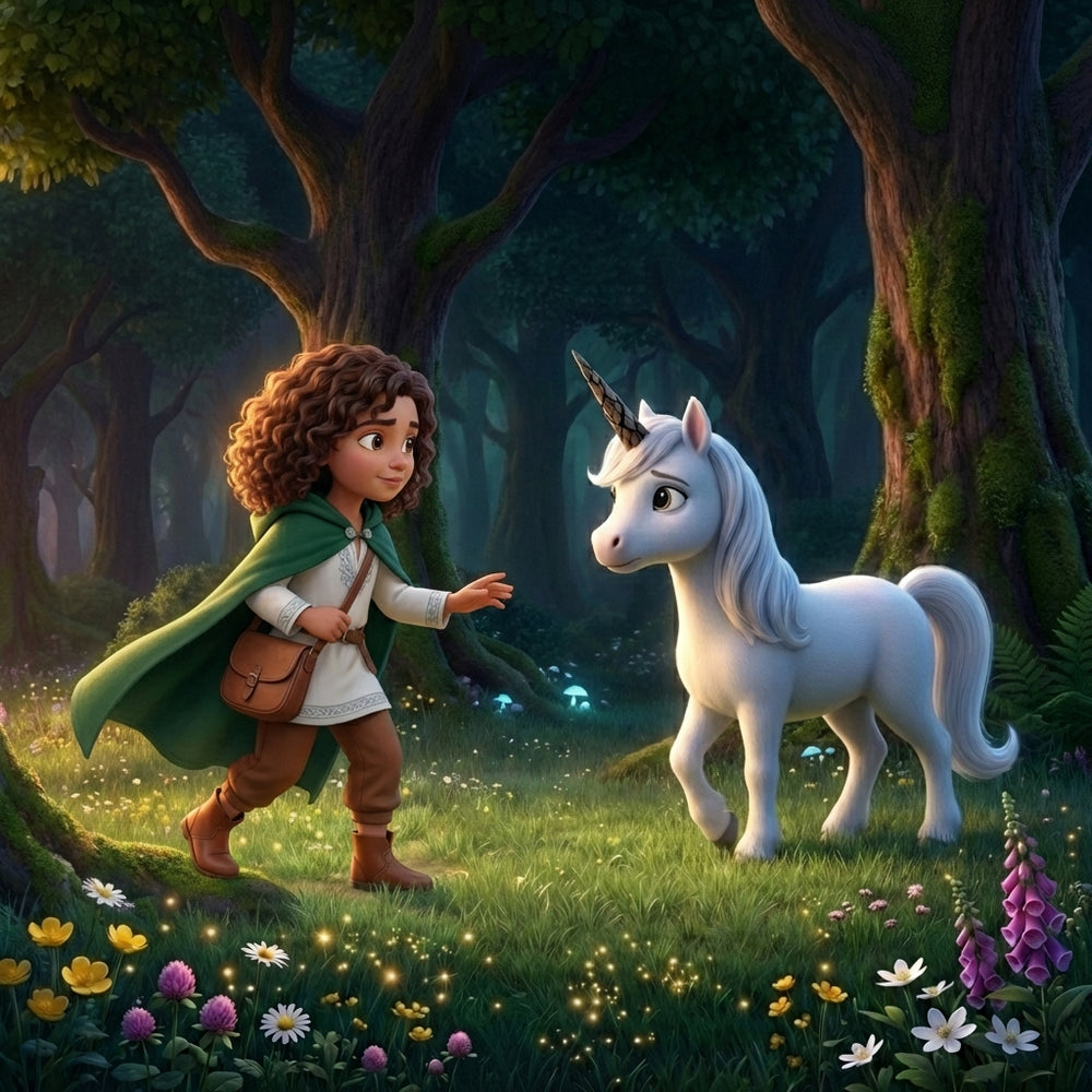 Twoje dziecko towarzyszy jednorożcowi z matowym rogiem przez ciemny las – i odkrywa, że prawdziwa magia zaczyna się w sercu.