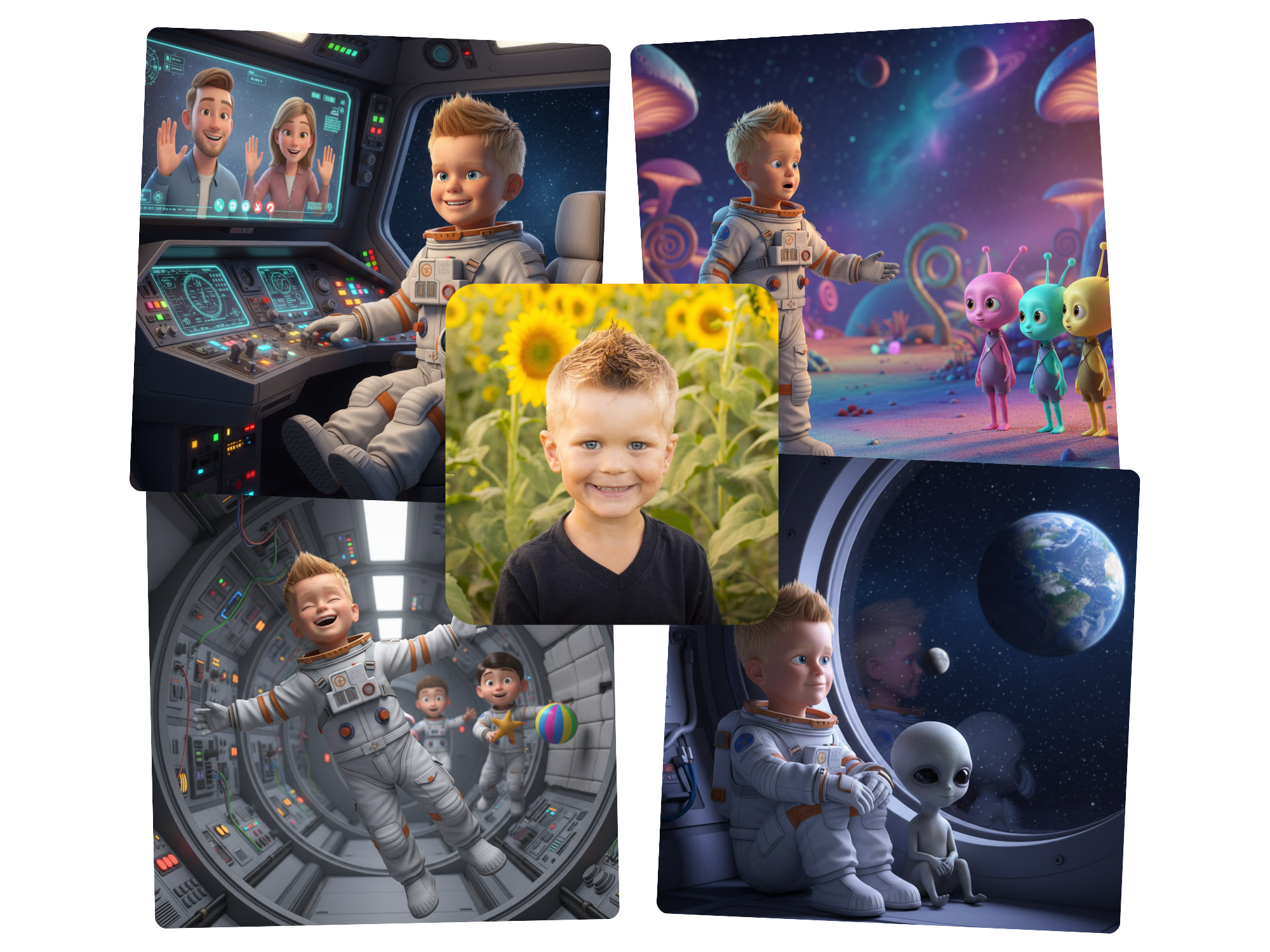 Wir verwandeln ein einfaches Kinderfoto in einen einzigartigen, fotobasierten Charakter - realistisch, detailreich und individuell.