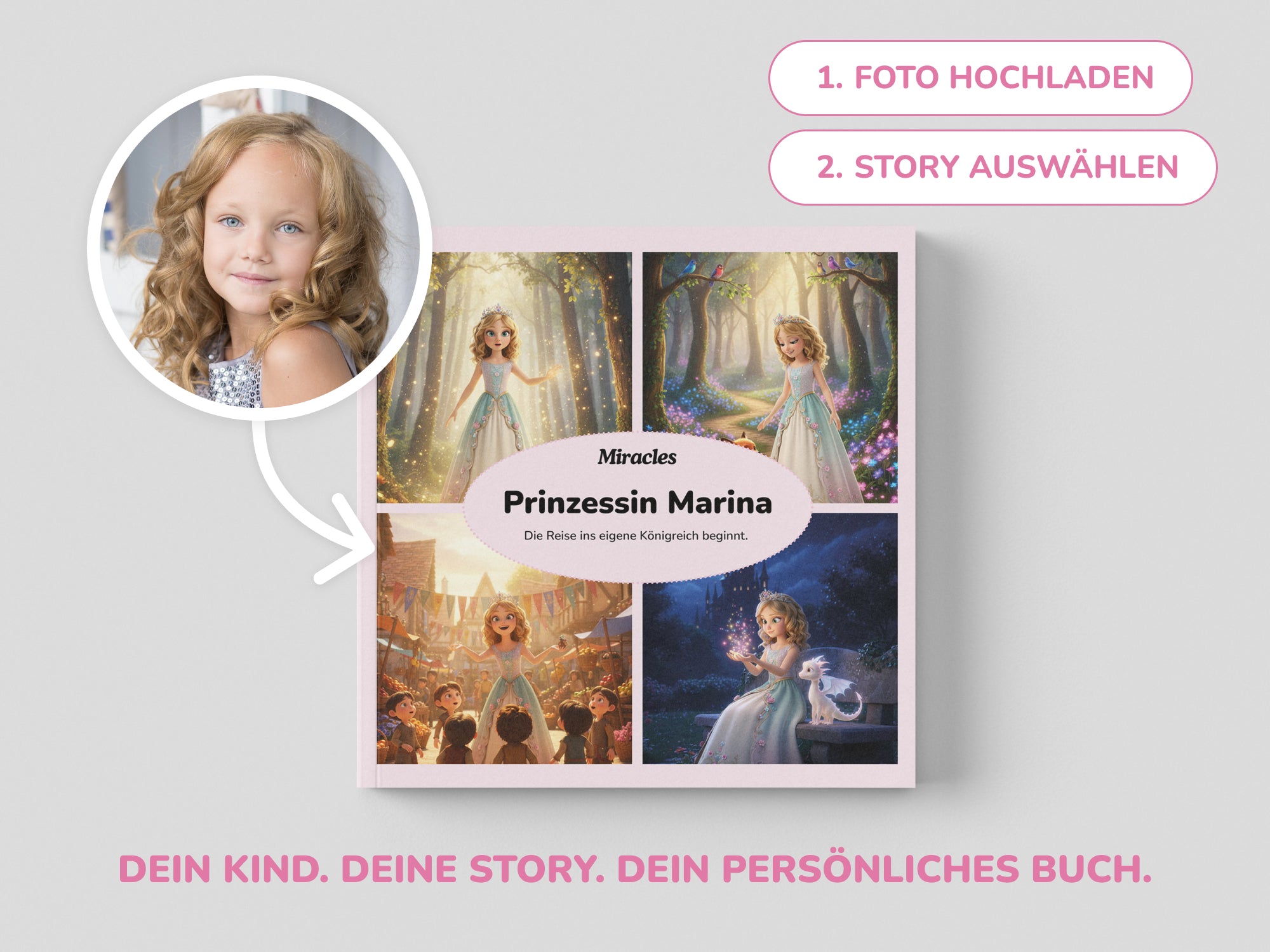 Das Ergebnis ist ein Märchenbuch, das es nur ein einziges Mal gibt - für dein Kind.
